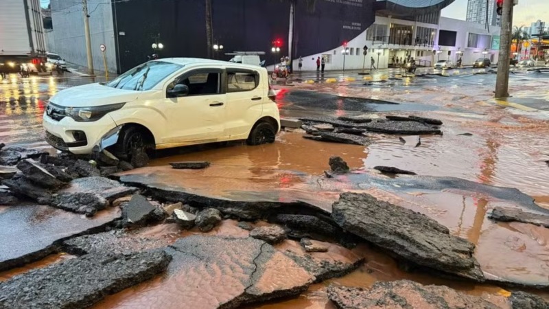 Chuva forte provoca alagamentos e estragos em Bauru; asfalto volta a ceder na Avenida Nações Unidas