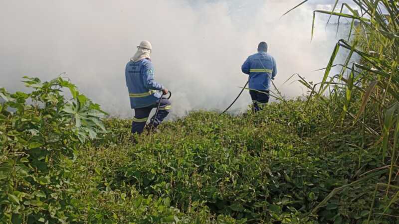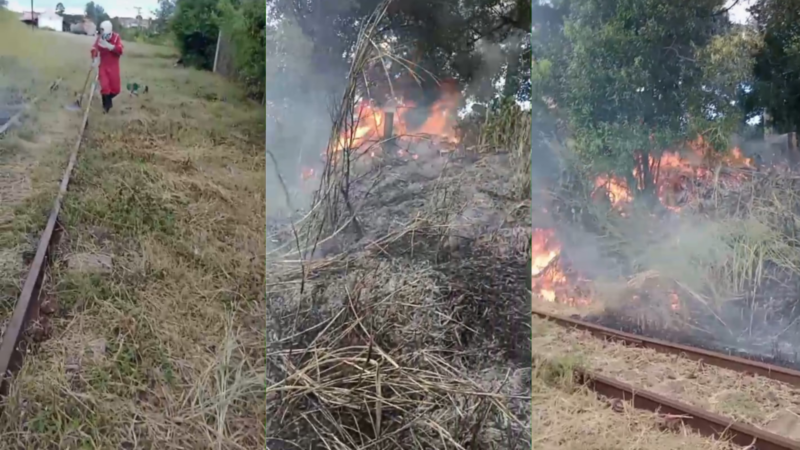 Defesa Civil combate novo foco de incêndio próximo à estação ferroviária em São Manuel