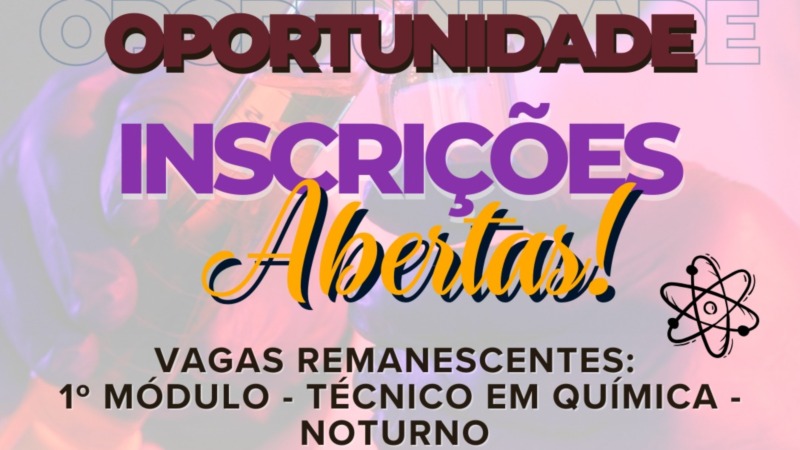 Inscrições abertas para vagas remanescentes do curso Técnico em Química em São Manuel