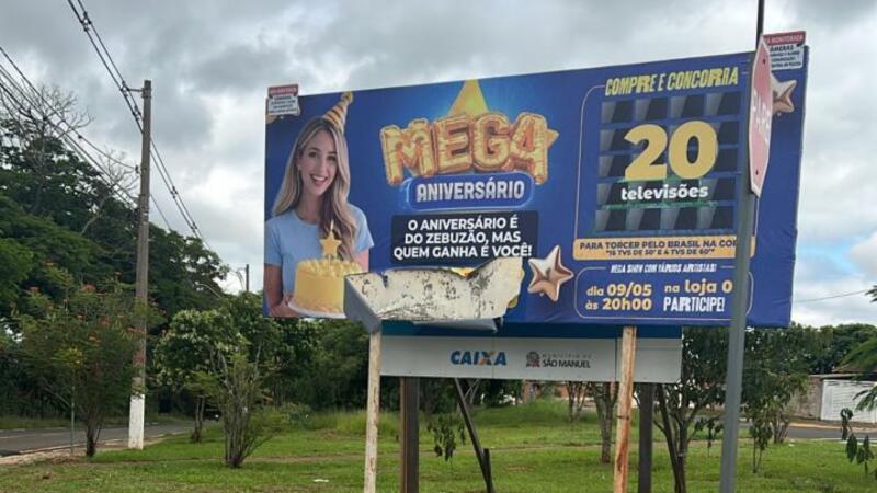 Placa de outdoor do Supermercado Zebuzão é vandalizada em Santa Mônica