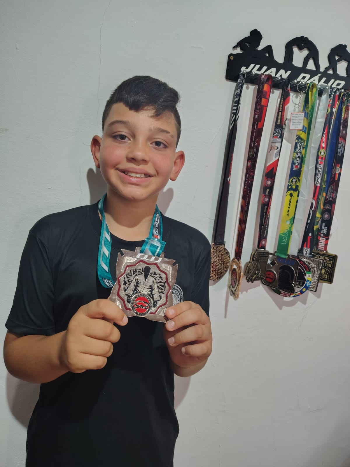 Em apenas 1 ano de treino, Juan participou de 9 campeonatos e subiu ao pódio em todos, demonstrando dedicação, técnica e garra. Ele treina sob a supervisão do professor David Teixeira, da Academia Miquinho, e vem se destacando como um dos jovens talentos da cidade.