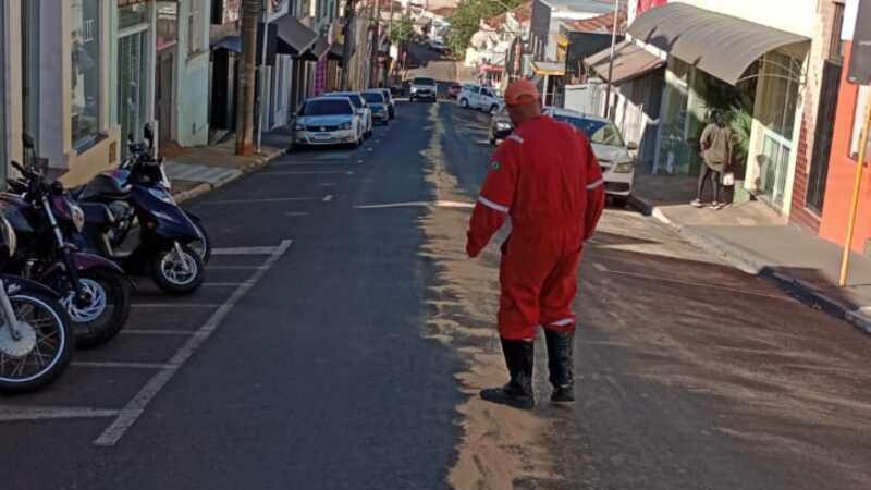 Na tarde desta quarta-feira (22), um caminhão que subia a rua Batista Martins provocou um derramamento de óleo em um trecho de aproximadamente 200 metros da via, no centro da cidade. Equipes da Defesa Civil foram acionadas e estiveram rapidamente no local para conter os riscos de acidentes de trânsito.