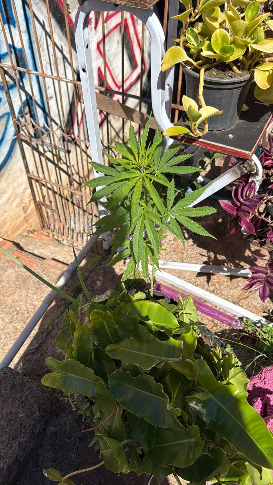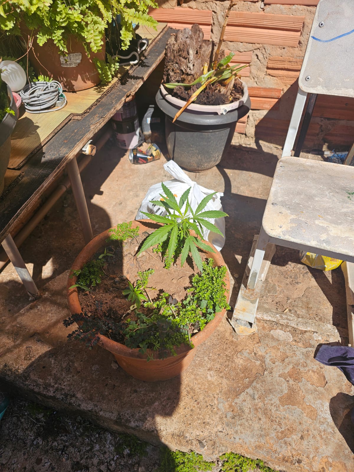 Durante a verificação externa, os policiais encontraram dois pés de maconha no jardim frontal. A moradora informou que as irregularidades eram de responsabilidade de seu filho, identificado pelas iniciais B.P.V., e permitiu a entrada da equipe na residência.