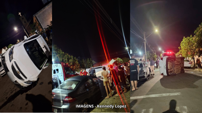 De acordo com informações da Polícia Militar, o condutor perdeu o controle da direção, colidiu o veículo contra contentores de lixo e atingiu outros três carros que estavam estacionados. Em seguida, o automóvel acabou tombando.