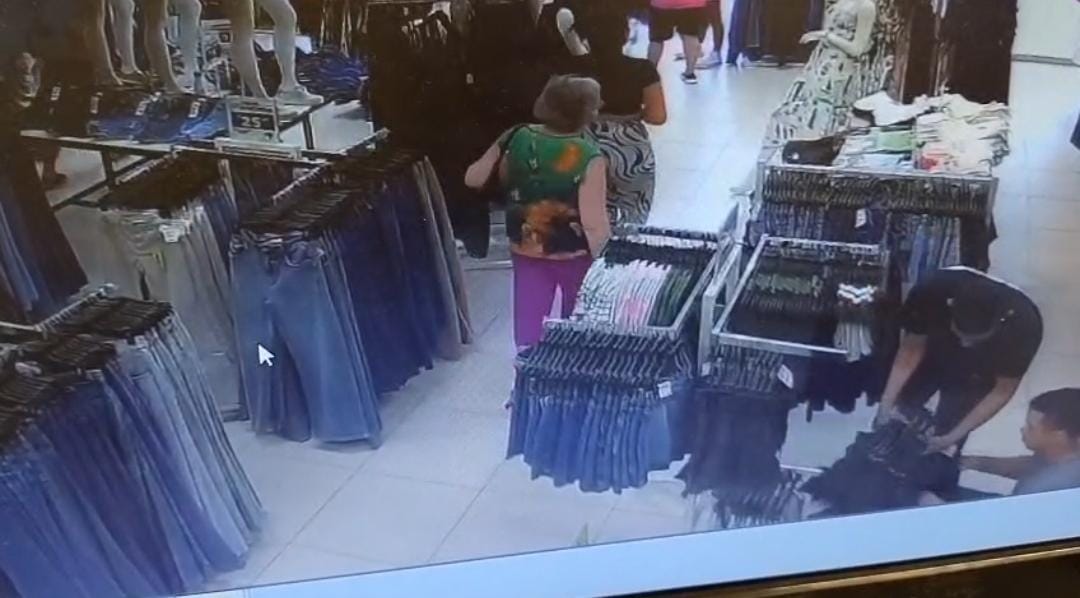 Segundo as imagens, enquanto parte do grupo distraía uma funcionária do outro lado da loja, outros integrantes agiam rapidamente no setor de roupas. Do lado direito do vídeo, é possível ver um dos homens agachado e outro em pé retirando peças de roupa, disfarçando a ação sempre que algum cliente se aproximava. Um terceiro indivíduo também aparece auxiliando na subtração dos produtos.
