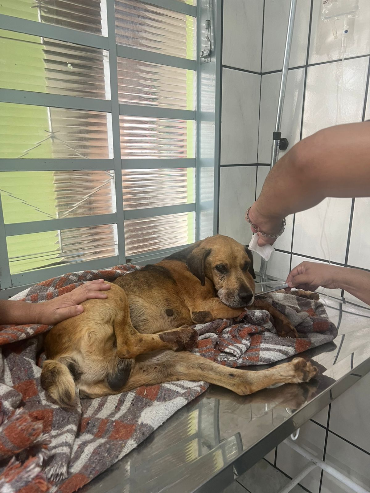 Ainda segundo a Adorável Vira-Lata, o cão foi levado para a sede de saúde da entidade, onde recebeu anestesia injetável, limpeza das lesões, medicação e exames emergenciais. Após a avaliação veterinária, os resultados apontaram quadro clínico grave, com diagnóstico de: