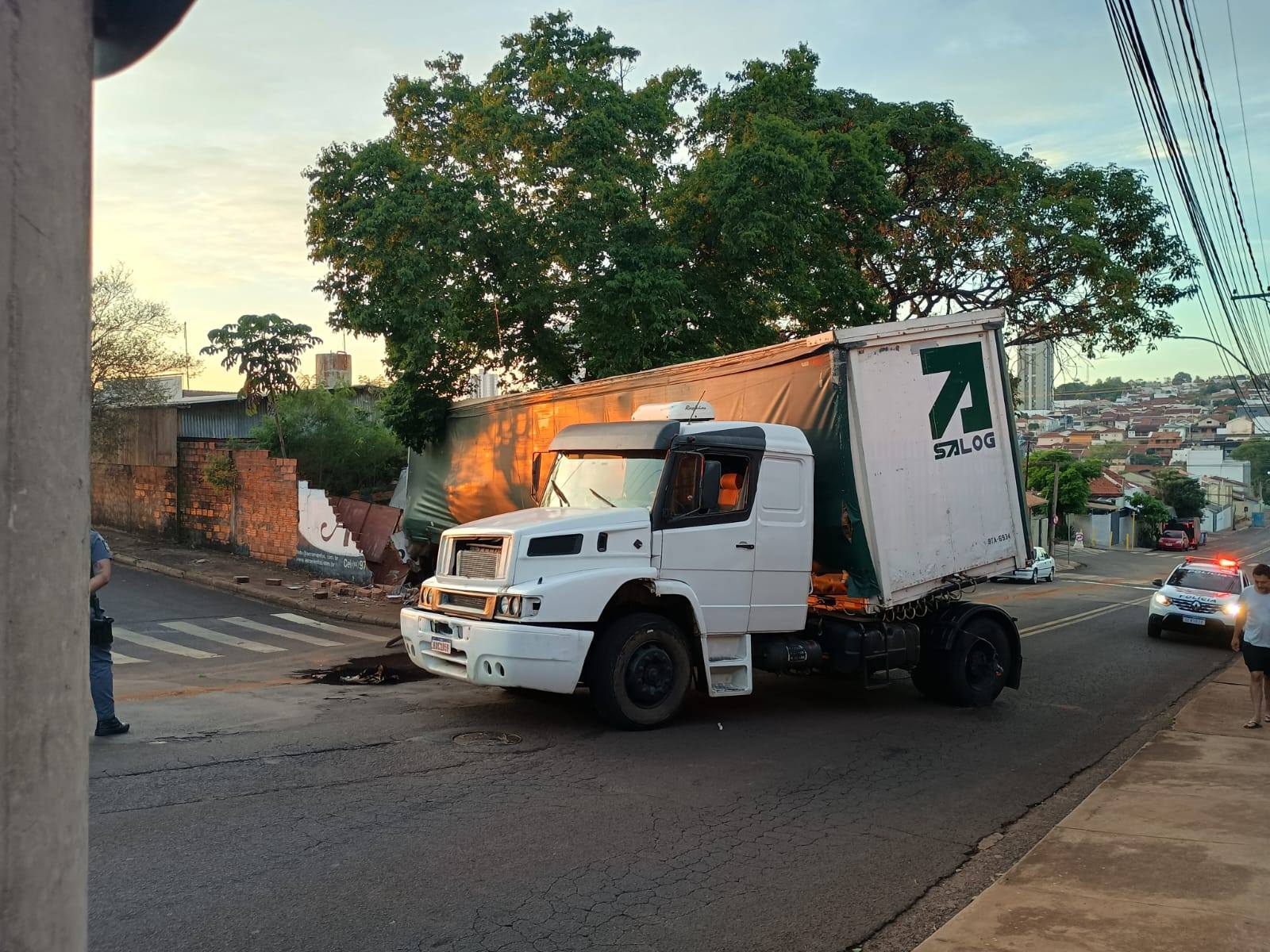 De acordo com as informações, o motorista de um caminhão carregado seguia sentido Vila Cruzeiro quando, ao subir o sinaleiro, o veículo perdeu o freio e acabou descendo de ré, colidindo contra o muro de um depósito de sucatas.