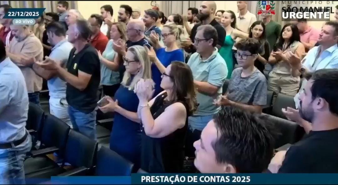 Ao final do pronunciamento, o prefeito foi aplaudido de pé pelos presentes, encerrando a prestação de contas em clima de reconhecimento e apoio ao trabalho realizado pela atual gestão.
