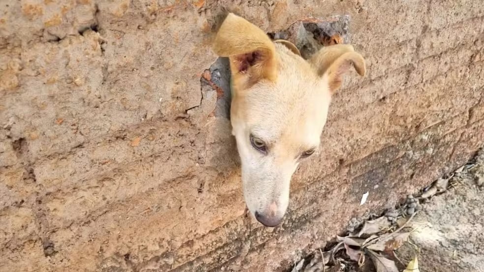 De acordo com a corporação, o animal entrou pelo acesso da tubulação, mas não conseguiu retornar, ficando preso no interior do cano de PVC. Para retirar o cachorro com segurança, os bombeiros precisaram realizar um trabalho técnico, que incluiu o corte da alvenaria ao redor da tubulação.