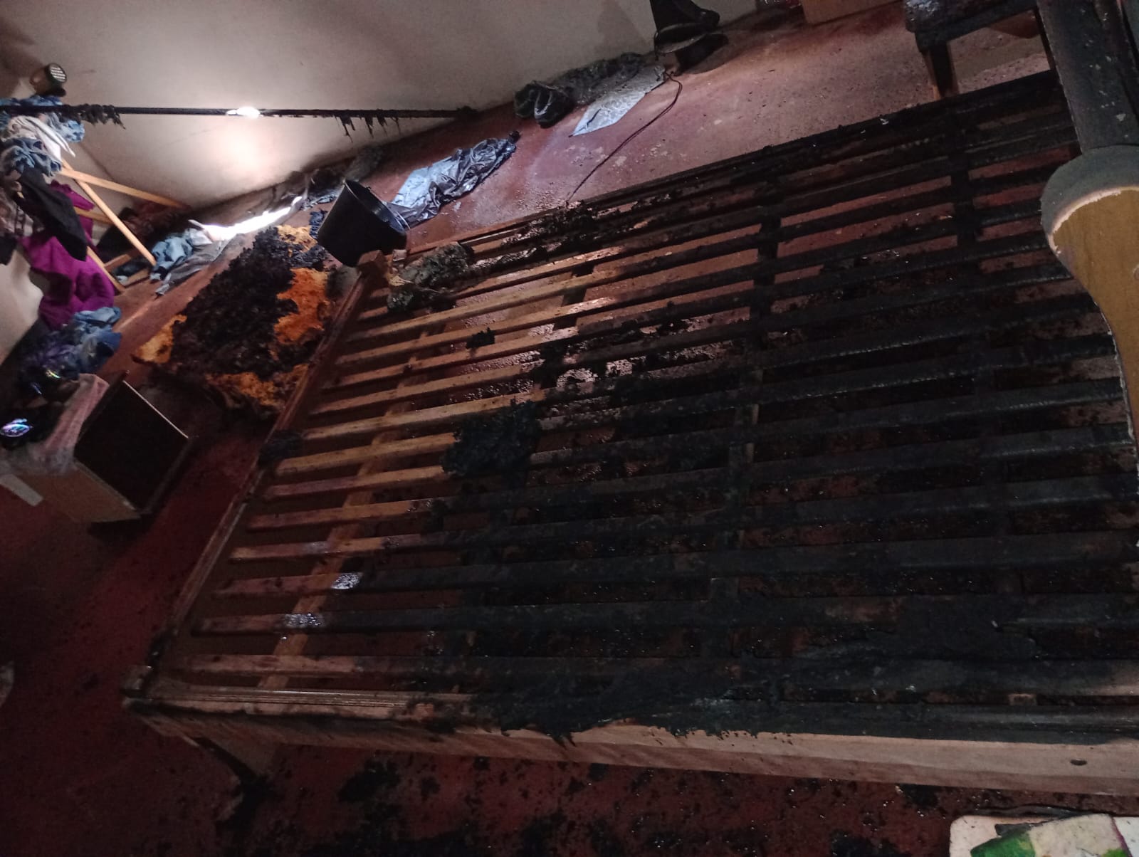 Segundo a corporação, o fogo atingiu apenas um quarto do imóvel, que passou por rescaldo e resfriamento pelas equipes.