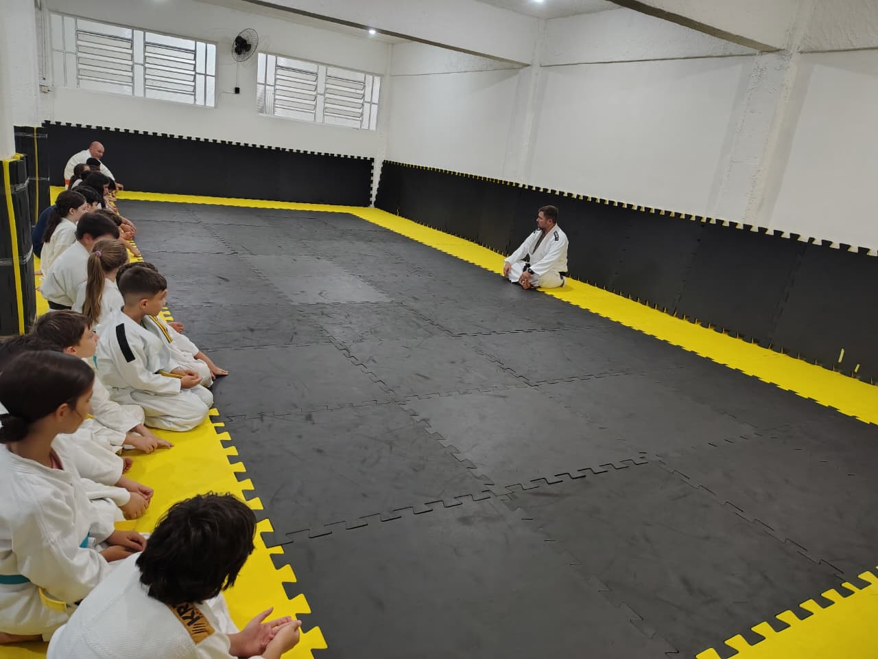 Foto da Secretaria de Esporte mostra alunos e professor durante as aulas de judô, que começaram em fevereiro.