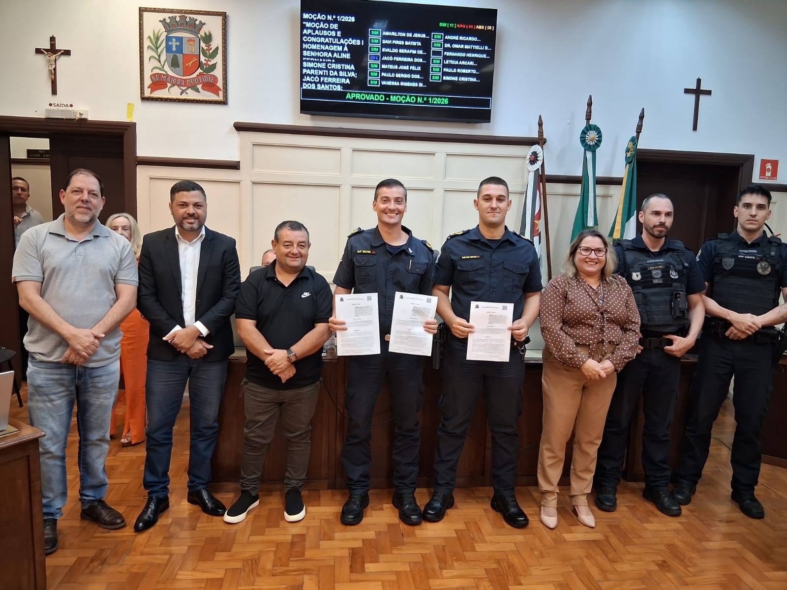 A Câmara Municipal de São Manuel aprovou a Moção nº 1/2026, que concede aplausos e congratulações à guarda civil Aline Fernanda Camargo Baptista da Silva, ao guarda João Braga Neto e à equipe da Guarda Civil Municipal de São Manuel pelo salvamento de um jovem em situação de risco registrada na manhã do dia 10 de fevereiro de 2026.