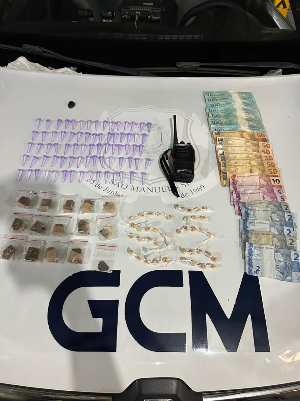 Um homem foi preso por tráfico de drogas na noite desta terça-feira (3), durante patrulhamento preventivo no bairro Santa Mônica, em São Manuel.