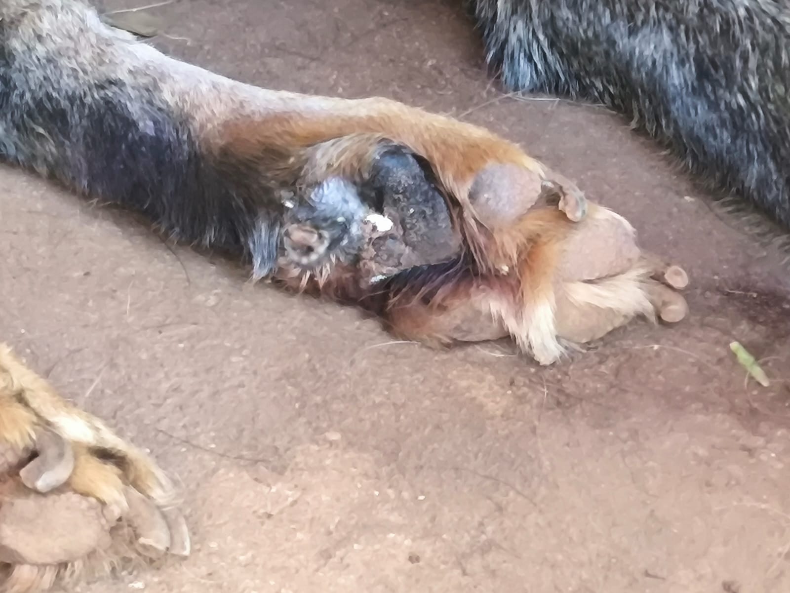 Durante a fiscalização, foi constatado que o cão apresentava uma lesão extensa na região do olho esquerdo, além de outro ferimento próximo. Também foram encontrados ovos de varejeira sobre machucados nas patas, situação que poderia evoluir para miíase (bicheira).
