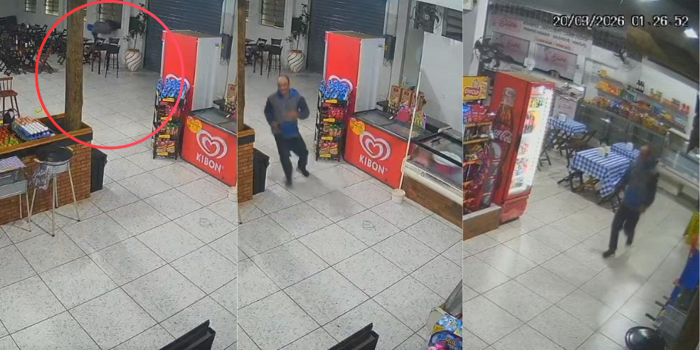 Imagens de câmeras de segurança mostram homem dentro do estabelecimento.