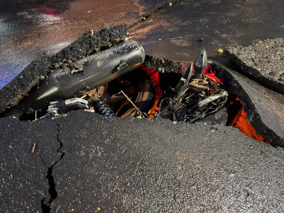 ️ Uma motocicleta chegou a ser “engolida” após o solo ceder. O local já havia registrado problemas semelhantes em 2024, quando um temporal transformou a avenida em um verdadeiro rio, arrastando veículos e causando prejuízos.