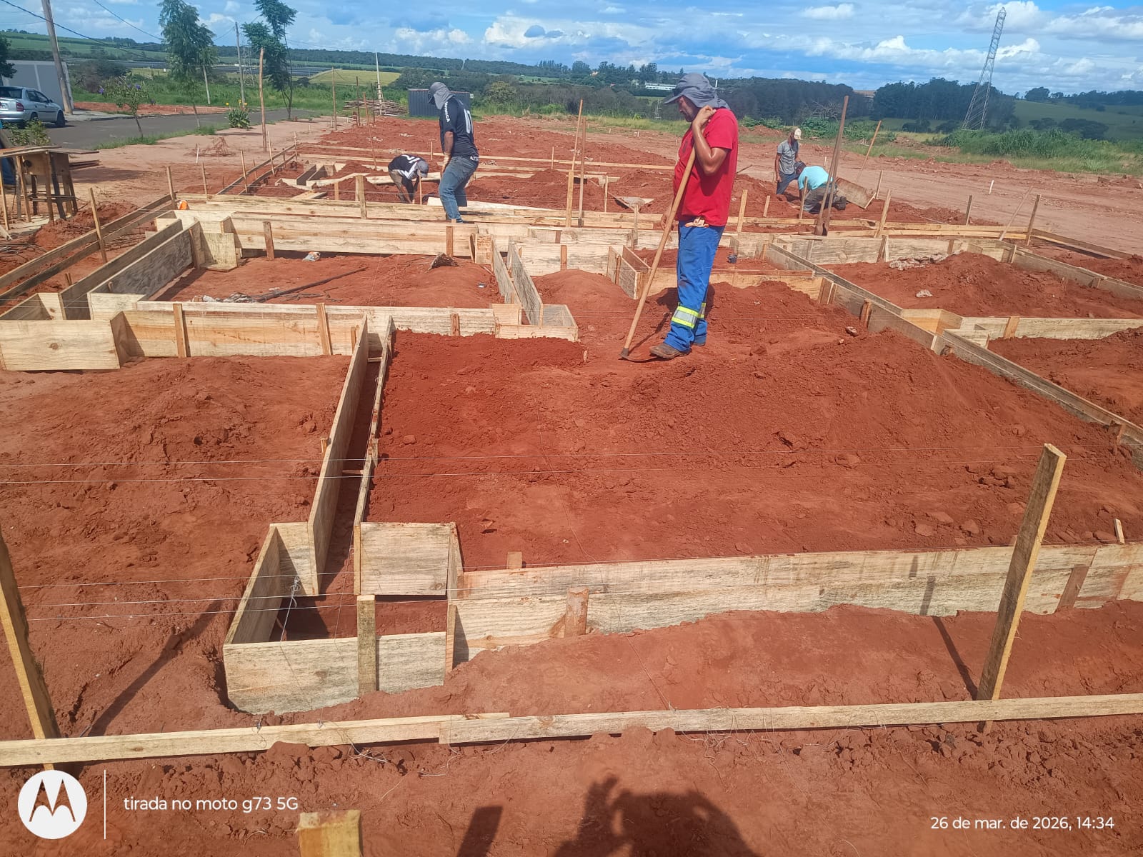 Segundo informações do assessor do setor de obras, José Roberto, o trabalho nas primeiras 10 residências avançou após a conclusão da concretagem das estacas (brocas). No momento, as equipes executam a montagem das caixas e a estruturação do alicerce para o levantamento das paredes.