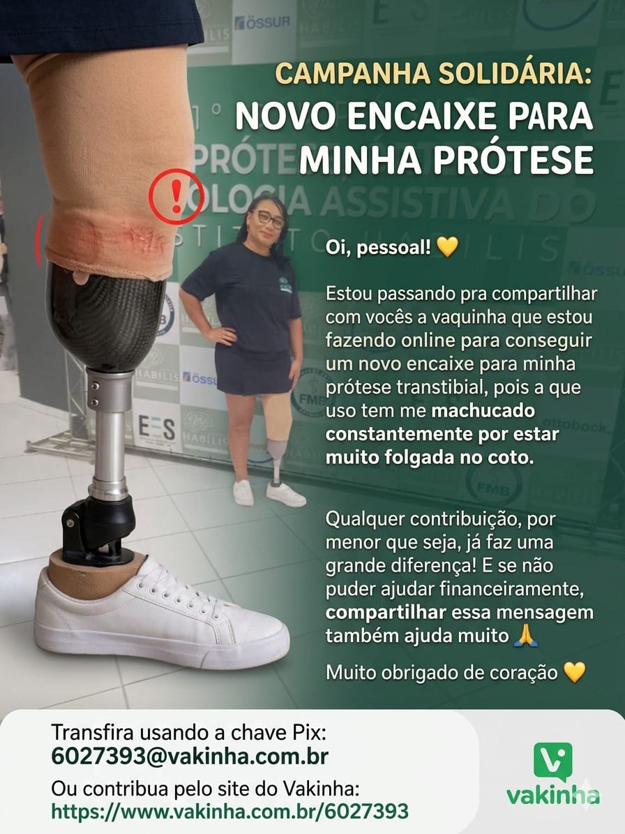 O alto custo de uma prótese adequada e moderna é o principal obstáculo para a moradora. Segundo ela, o valor necessário para o novo equipamento está fora de sua realidade financeira atual, o que a motivou a pedir o apoio da comunidade.