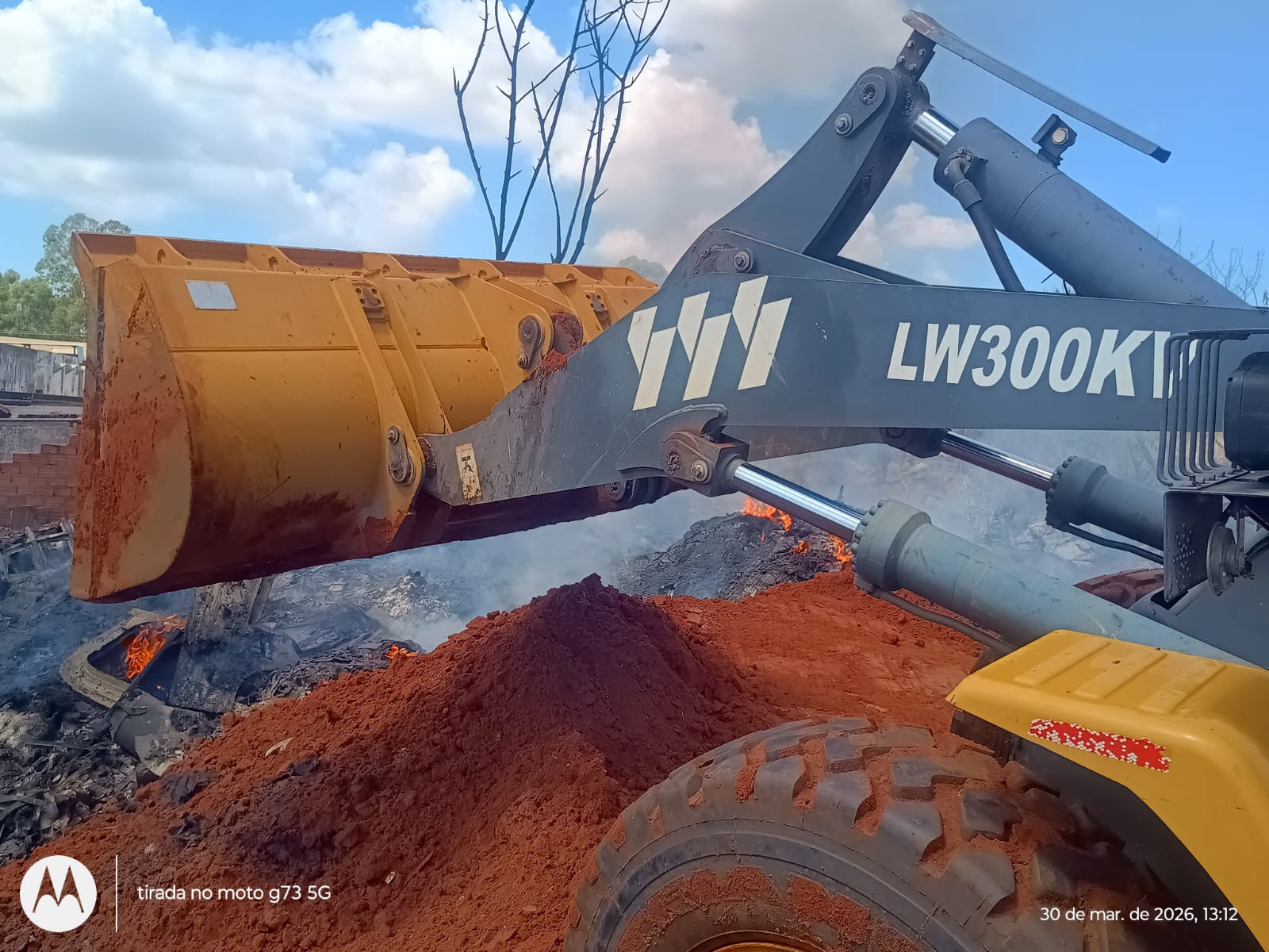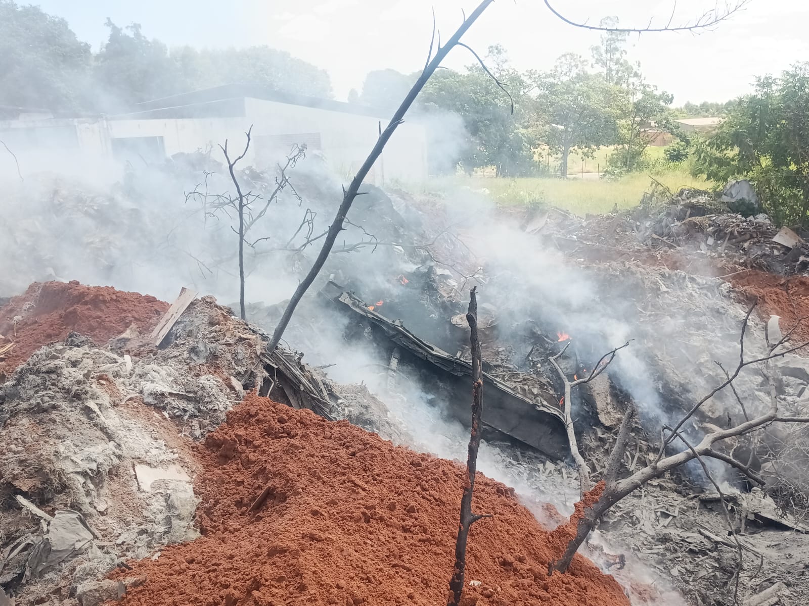 O uso do maquinário é estratégico para revirar as camadas de fibra atingidas, garantindo a extinção de focos internos de calor. O material, altamente inflamável e persistente, exige atenção redobrada para evitar que o fogo ganhe força novamente.