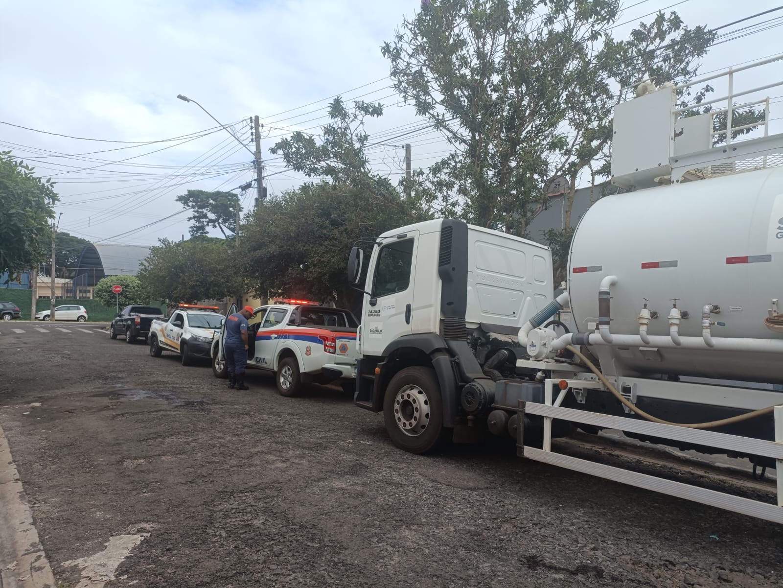 Durante o combate ao fogo, os agentes localizaram e retiraram do interior da casa um botijão de gás que apresentava vazamento, evitando uma possível explosão e agravamento da situação.