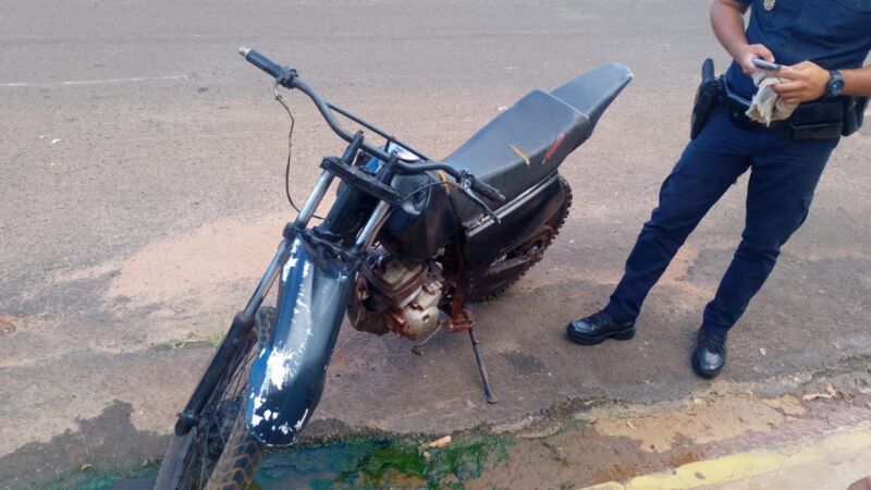 Ao realizar a abordagem, os guardas verificaram que o chassi da motocicleta apresentava sinais de raspagem, impossibilitando a identificação imediata. O condutor foi identificado como um menor de idade.