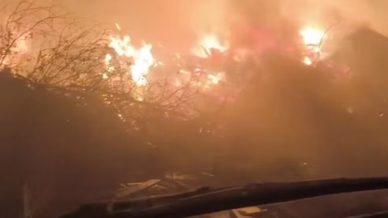 Imagens registradas pela Defesa Civil mostram que as chamas também consumiram parte da vegetação no local.