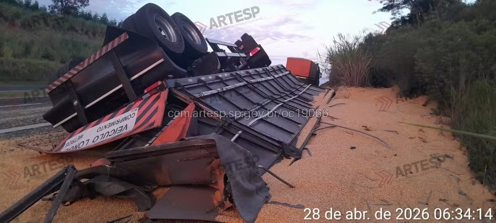De acordo com informações da Artesp, o motorista perdeu o controle da direção na altura do km 295, fazendo com que o veículo desviasse para a esquerda e tombasse na pista.