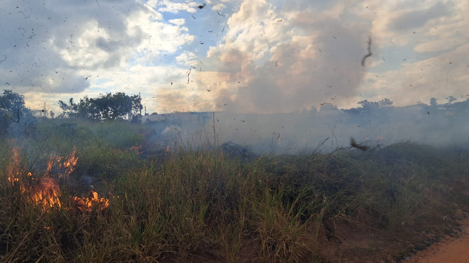Fogo começou na tarde desta terça-feira (28); ação rápida das equipes impediu que as chamas chegassem à Rodovia Marechal Rondon.