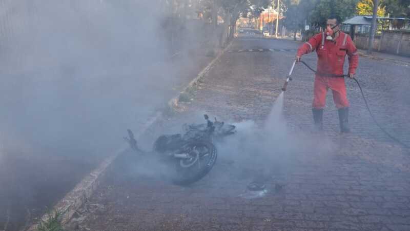 Defesa Civil de São Manuel age rápido e controla incêndio a motocicleta no centro da cidade