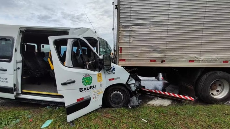 Acompanhante de paciente morre em acidente envolvendo van da Secretaria de Saúde de Bauru na Rodovia Castello Branco