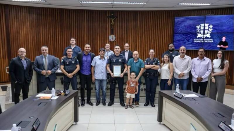 GCM de Lençóis Paulista recebe moção de congratulações após salvar criança engasgada durante folga